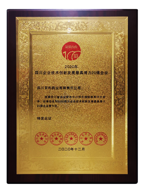 • 2020四川企业技术创新发展最具潜力20强